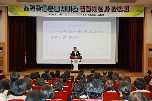 예천군은 유천재가노인통합지원센터(센터장 유신해) 주관으로 27일 청소년수련관 1층 극장에서 120여 명의 종사자가 참석한 가운데 노인맞춤돌봄서비스 생활지원사 간담회 및 종사자·이용자 인권교육을 실시했다.