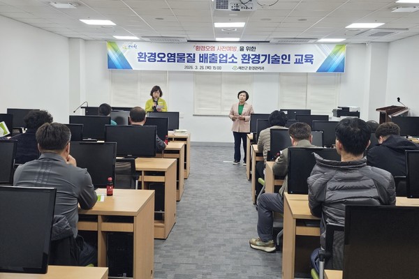 예천군은 26일 군청 1층 정보화교육장에서 관내 대기·수질·폐기물 등 환경오염물질 배출사업장의 환경기술인들을 대상으로 역량 강화 교육을 실시했다고 밝혔다.