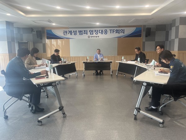 경북경찰청은, 2026년 3월 26일 회의실에서 7개 부서가 함께하는 ‘관계성 범죄 엄정 대응 TF 회의를 개최하였다.