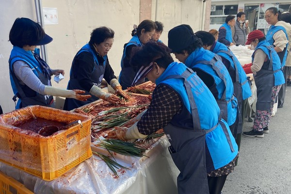 이날 행사에는 회원 및 가족 등 30여 명이 모여 쪽파김치를 직접 담그고 포장했으며, 완성된 김치는 유천재가노인통합지원센터를 통해 관내 독거노인 100여 명에게 전달될 예정이다.