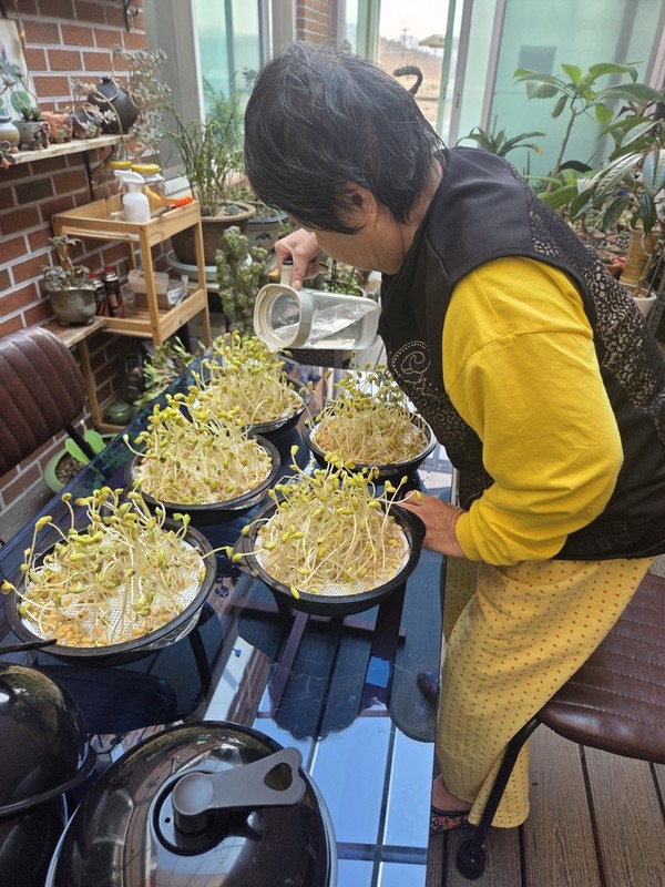 어르신들은 직접 콩나물을 재배하며 성장 과정을 관찰하고, 일상 속 즐거움과 성취감을 느끼는 시간을 가졌다.