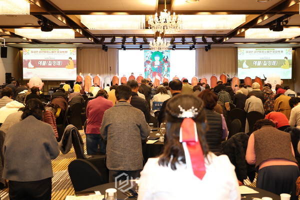 개심사지 오층 석탑의 국보 승격을 기념하고 한 해를 마무리하는 ‘을사년 송년 법회 및 예천 불자의 밤’ 행사가 13일 오후 4시 안동 스텐포드호텔에서 예천 지역 사부대중과 불자, 지역 인사들이 함께한 가운데 장엄하고도 따뜻한 분위기 속에서 봉행됐다.