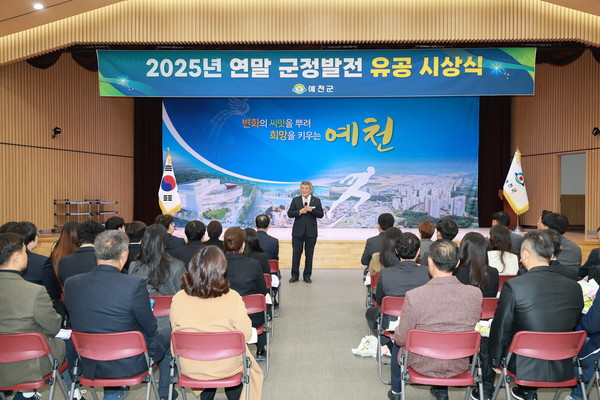 예천군은 24일 오전 9시 30분 군청 5층 대강당에서 ‘연말 군정발전 유공 공무원 시상식’을 열고 군정 발전에 기여한 공무원과 공무직, 기간제 근로자 등 42명에게 표창을 수여했다.