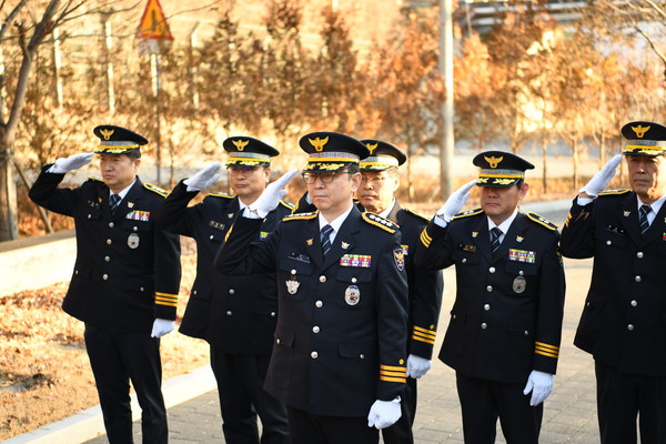 이날 보문치안센터 내 호국경찰 유적기념비 앞에서는 6.25 전쟁에서 순직한 선배경찰관 8명의 넋을 기리는 참배 행사를 진행하고, 이어 경찰서 2층 소회의실에서는 승진자 3명*과 간담회를 진행하며 경찰서장의 축하인사와 함께 승진자들의 소감을 말하는 시간을 가졌다.