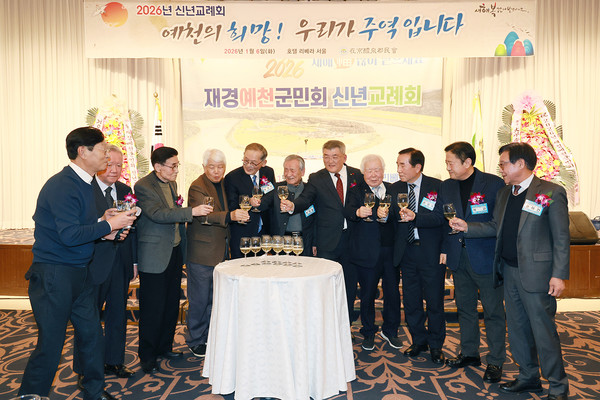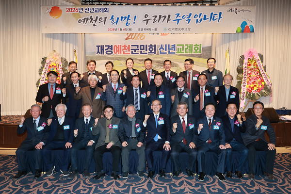 재경예천군민회(회장 윤동춘) '2026년 신년교례회'를 6일 호텔 리베라 서울에서 열어 참석 인사들이 새해 인사를 하며 덕담을 나누었다.