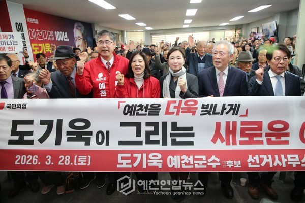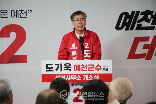 국민의힘 도기욱 예천군수 예비후보가 28일 예천읍 충효로 선거사무소에서 개소식을 열고 예천 변화와 재설계를 위한 본격적인 선거 행보에 들어갔다.