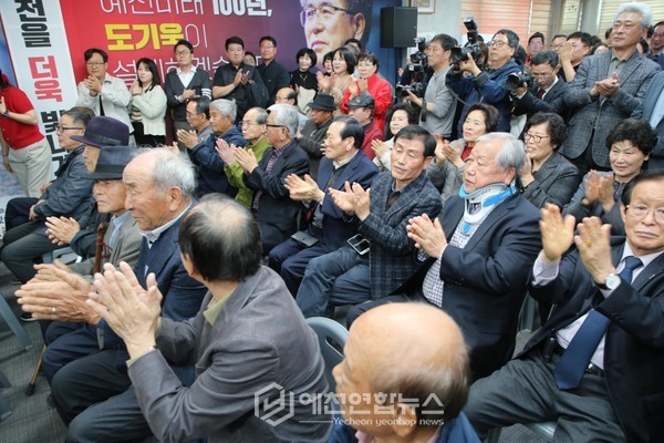 행사 마지막 순서에서는 참석자 전원이 자리에서 일어나 선창에 맞춰 “도기욱과 예천군민이 함께 꾸는 꿈은 이루어진다”를 함께 외쳤다. 건물 안팎에서 구호가 이어졌고, 박수와 함성이 겹치며 현장 열기는 마지막까지 이어졌다.