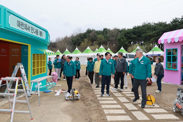 이번 점검에서는 농·특산물 판매와 홍보·체험부스가 설치되는 천년숲부터, 공동개최의 첫 시작을 알리는 경북도청 새마을광장을 차례로 방문해 주요 시설 현황과 관리 상태를 점검했다.