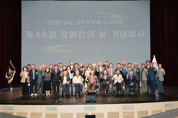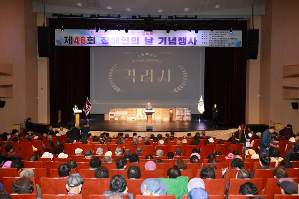 예천군은 예천군장애인협회(회장 이완희) 주관으로 2일 오후 2시 예천문화회관 대공연장에서 ‘당연한 일상, 모두가 누릴 수 있도록’이라는 슬로건 아래 제46회 장애인의 날 기념행사를 개최했다.